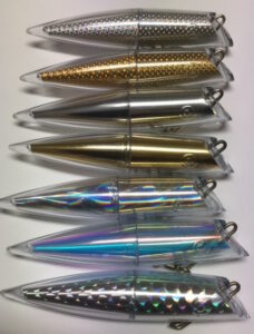50/50 lures – these lures are different colors on each side. Half the time color A will be painted on the right side (color B on the left) and half the time color A will be painted on the left side (color B on the right). So, if you order 6, 3 will be one way and 3 will be the other.